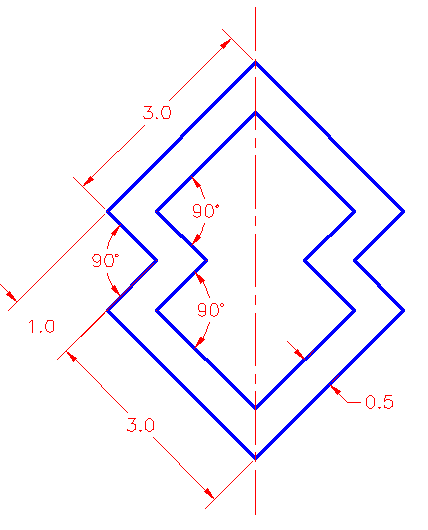 Extra Practice: Copy this drawing - extra_2-002.gif. The centre line in the middle indicates that both halves are the same. Create one polyline, then offset it to get the smaller one.