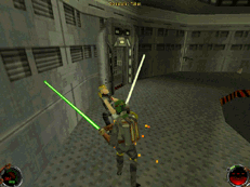 In Dark Forces, Kyle Katarn, a young mercenary successfully infiltrated the Empire. Jedi Knight continues the story of Katarn as he embarks on a quest into his past and learns the mysterious ways of the Jedi. With this knowledge, he must stop seven Dark Jedi from unlocking the powers of a hidden Jedi burial ground. This task forces Katarn to decide his destiny. If he chooses the Dark side, he will come into enormous power. If he chooses the Light side, he faces seemingly insurmountable evil. Whatever path Katarn chooses will change the face of the galaxy forever.